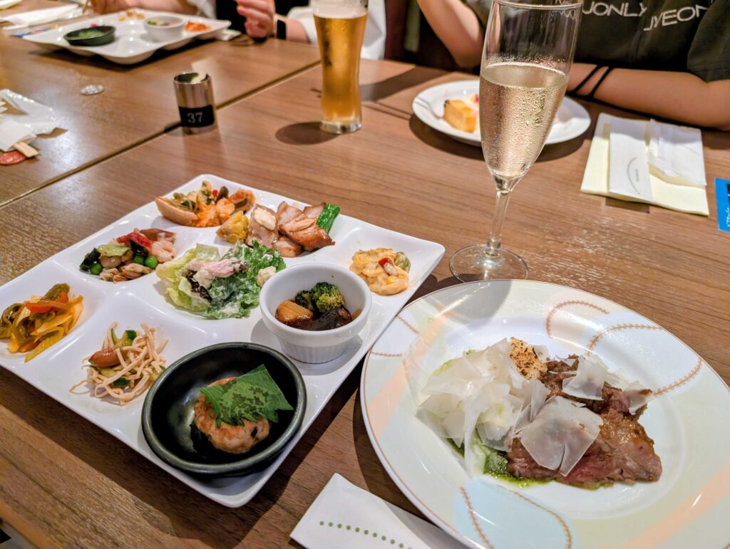 ホテルビュッフェで美味しい食事とお酒を楽しみました〜!